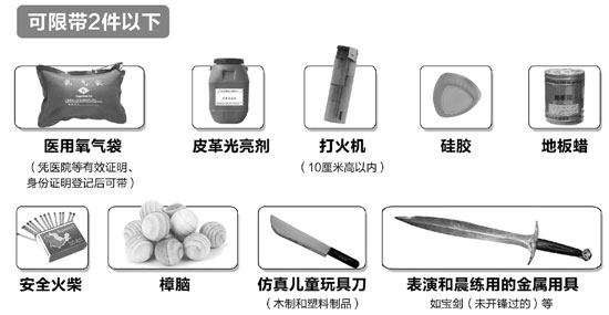 那么到底哪些东西能带,哪些不能带呢?亲,看清楚了,对照这张图,大家给包包做个大扫除吧。