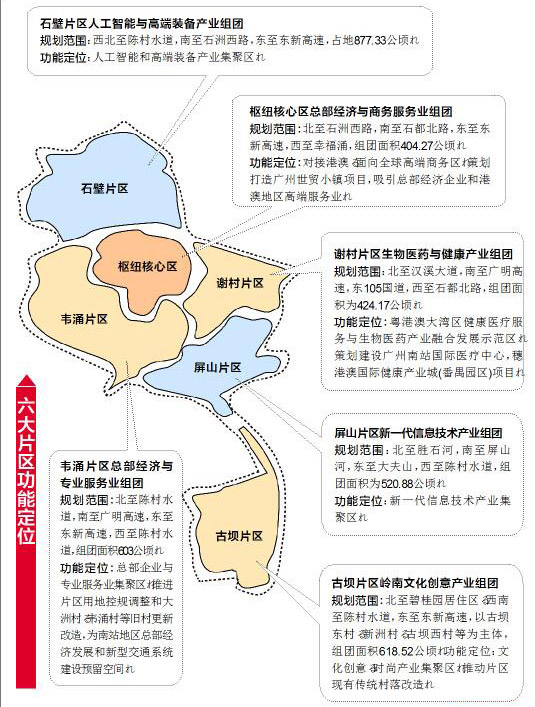 功能定位:对接港澳、面向全球高端商务区。策划打造广州世贸小镇项目,吸引总部经济企业和港澳地区高端服务业。