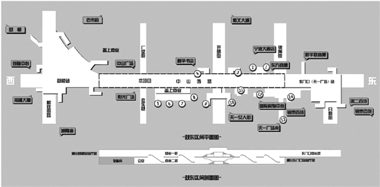宁波轨道交通1号线鼓楼-东门口(天一广场)区间共分为三层,地下一层和地下二层都是商业层,地下三层是轨道交通运行区。